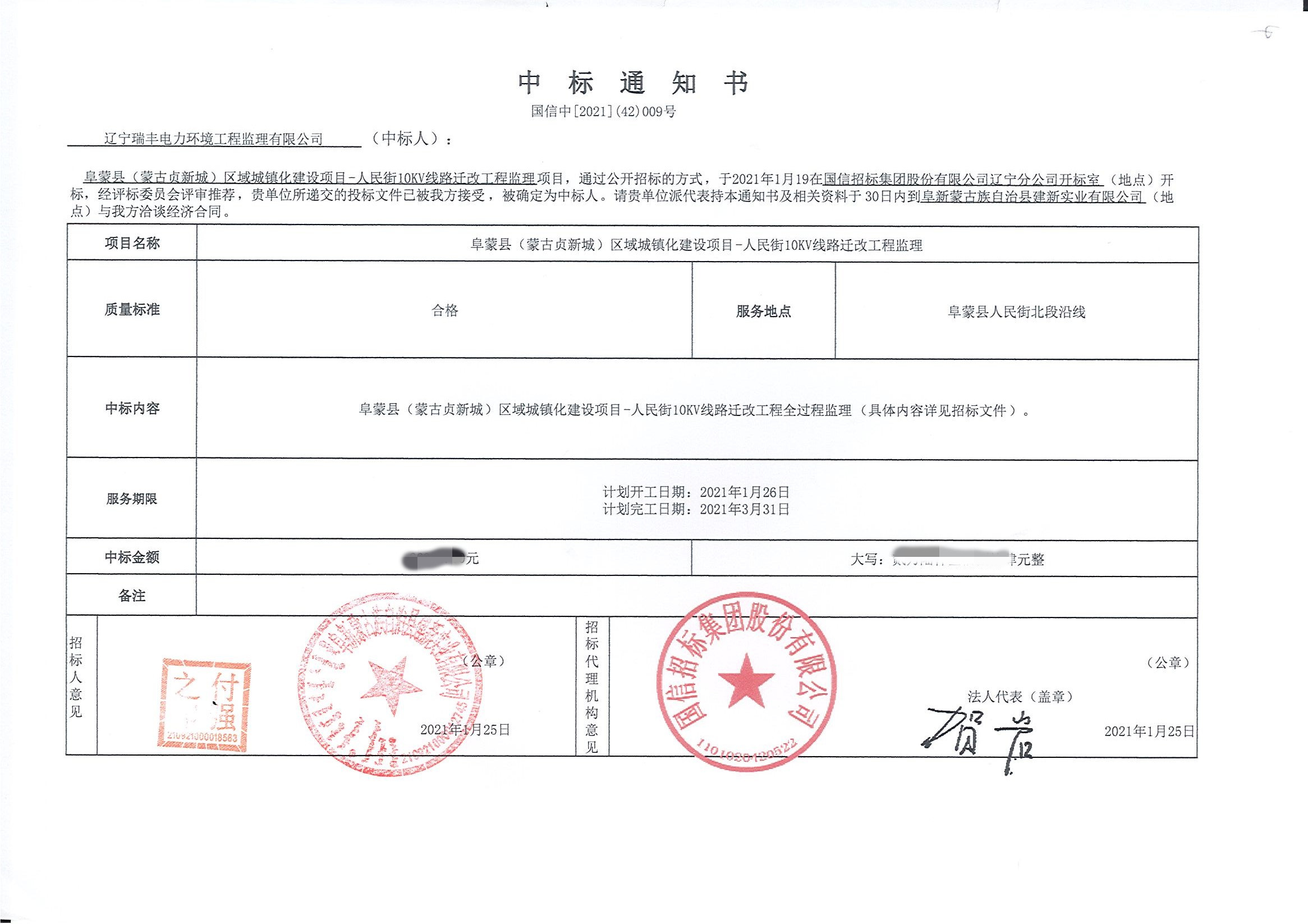 中標(biāo)喜訊-阜蒙縣(蒙古貞新城)區(qū)域城鎮(zhèn)化建設(shè)項目-人民街10KV線路遷改工程監(jiān)理