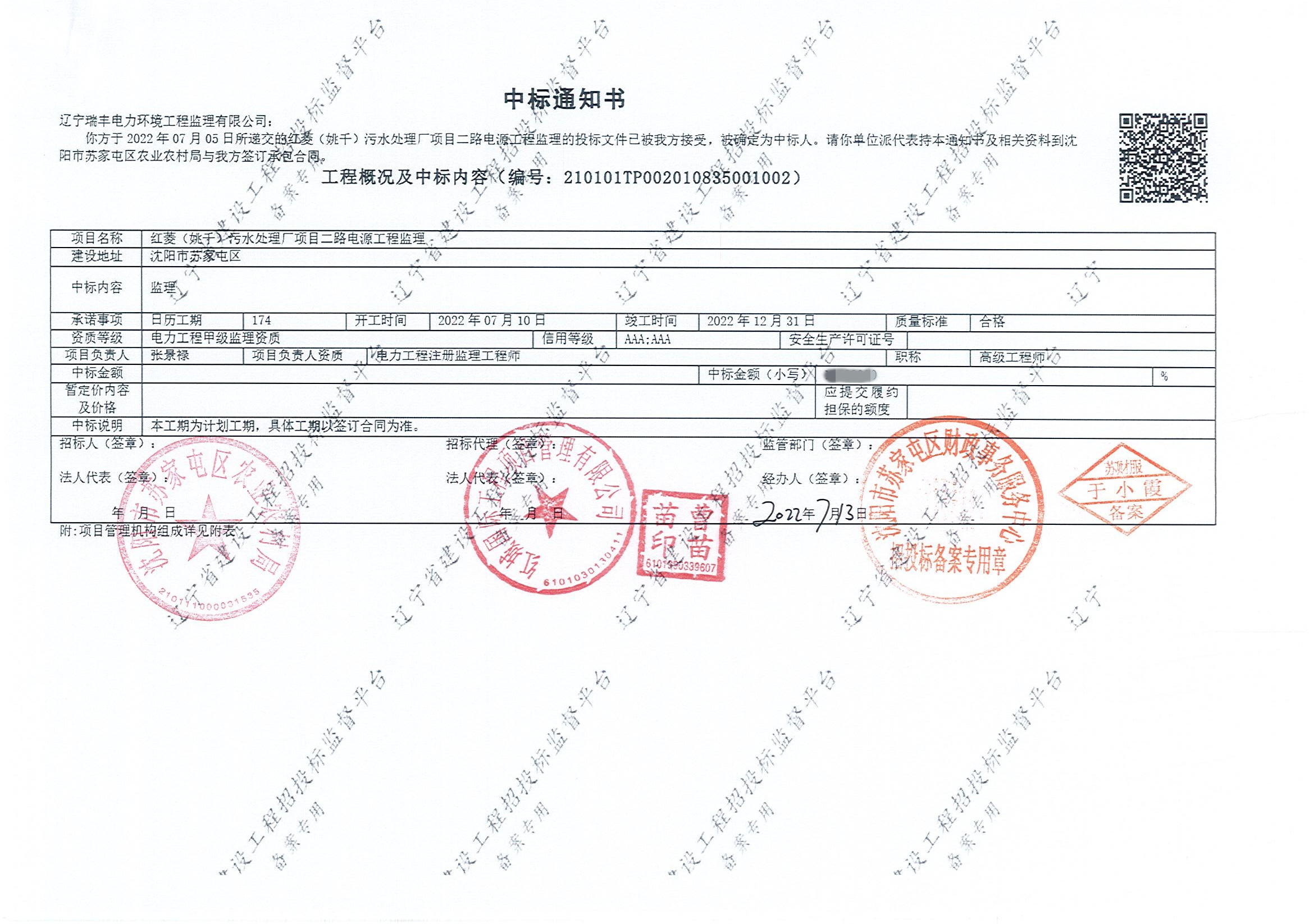 中標(biāo)喜訊-紅菱(姚千)污水處理廠項(xiàng)目二路電源工程監(jiān)理