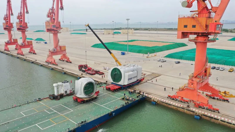 項目安裝全球首臺下線的18兆瓦海上風(fēng)電機組,風(fēng)電機組輪轂中心高度145米,葉輪直徑260米,機艙凈重約500噸,機組整機國產(chǎn)化率高達99%。