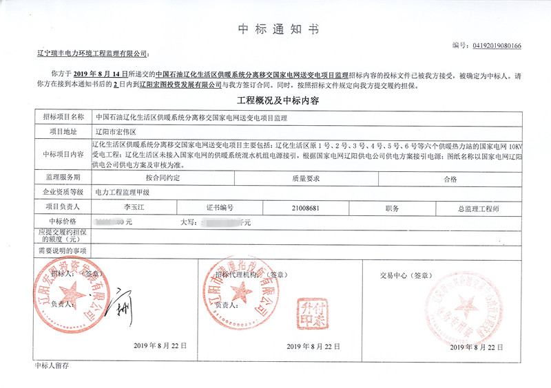 中標(biāo)喜訊-中國石油遼化生活區(qū)供暖系統(tǒng)分離移交國家電網(wǎng)送變電項目監(jiān)理