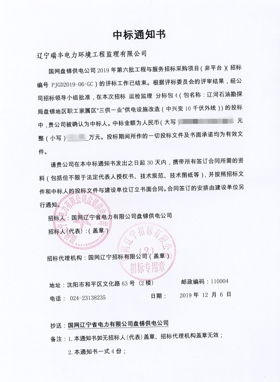 中標(biāo)喜訊-遼河石油勘探局盤(pán)錦地區(qū)職工家屬區(qū)“三供一業(yè)”供電設(shè)施改造(中興變10千伏外線(xiàn))